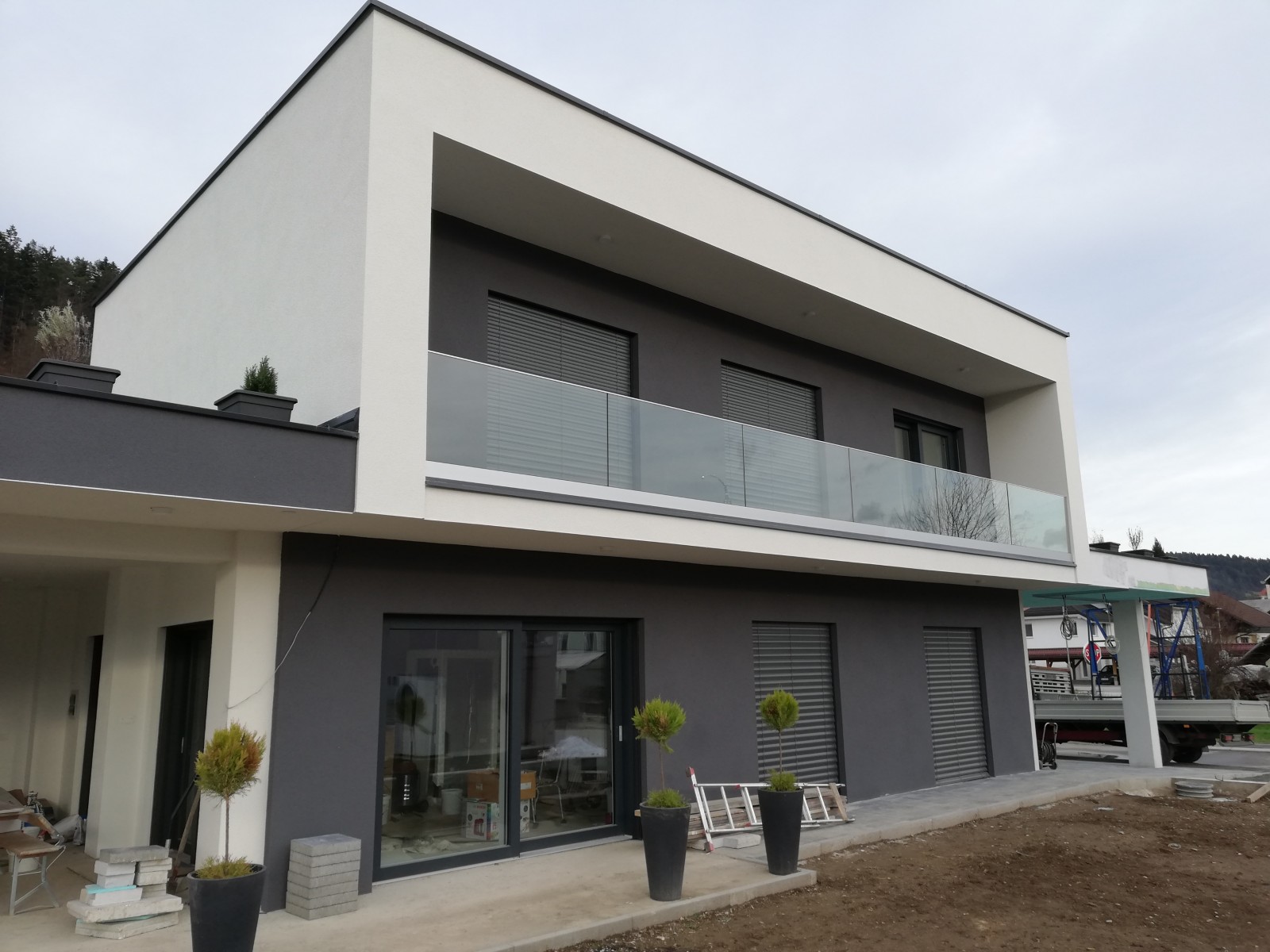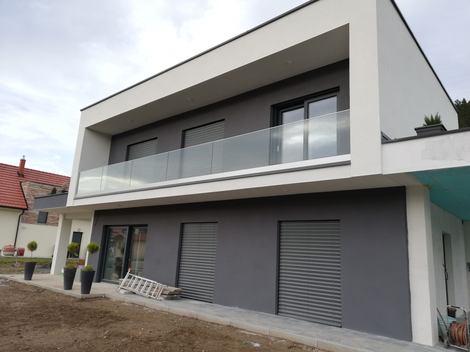 Steklena ograja je sestavljena iz: